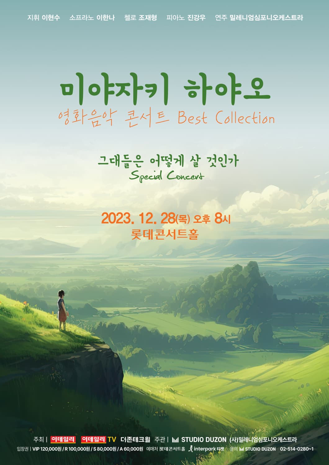 미야자키 하야오 영화음악콘서트 <그대들은 어떻게 살 것인가 Special Concert> 기간 : 2023-12-28 ~ 2023-12-28 장소 : 롯데콘서트홀 문의처 : 스튜디오 더존 02-514-0280 요금 : VIP 120,000 ㅣ R석 100,000 ㅣ S석 80,000 ㅣ A석 60,000 음악/콘서트 서울 예매하기