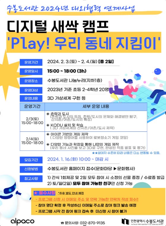 [인천] 디지털 새싹 캠프 'play! 우리 동네 지킴이'