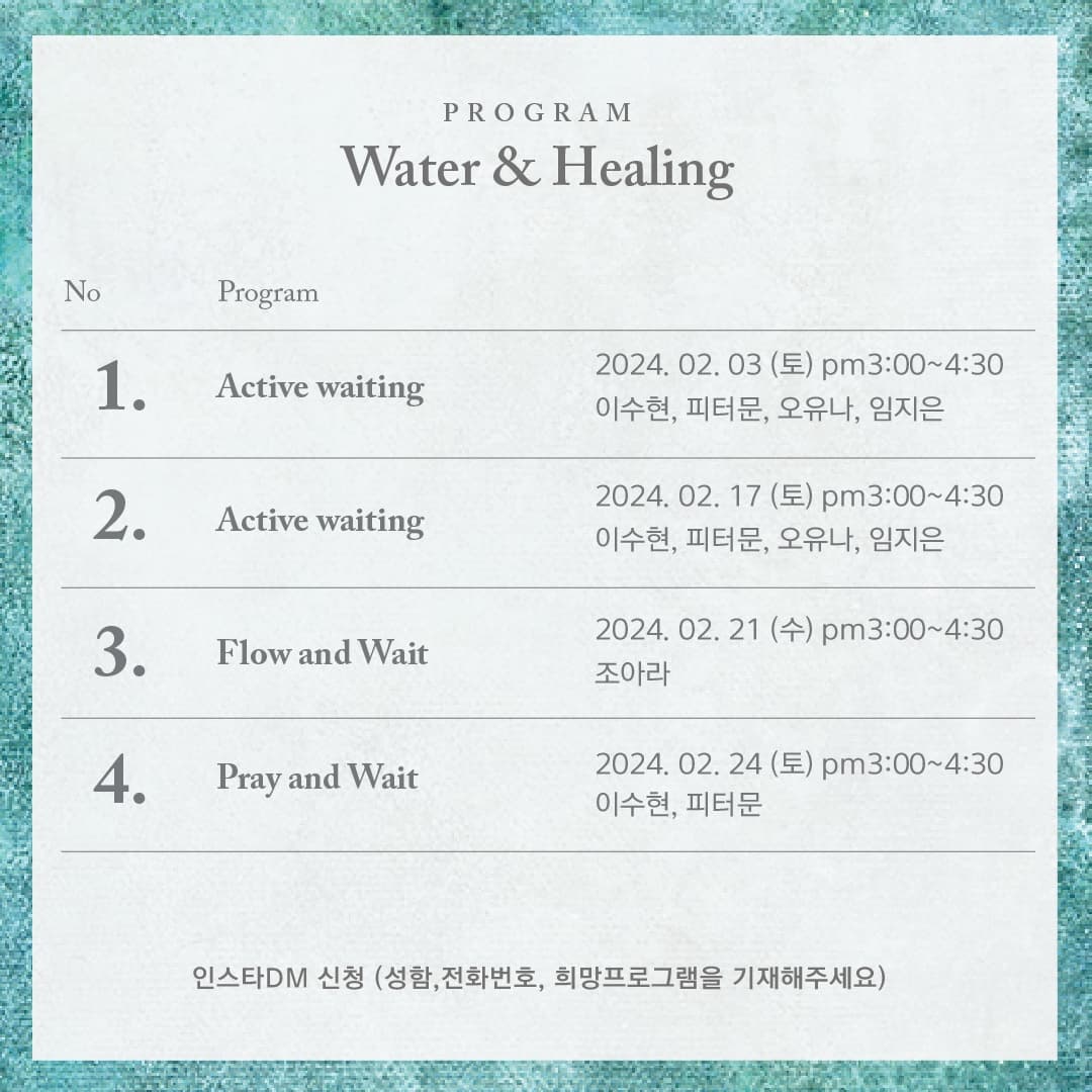 Water and Healing 관객체험형 힐링 프로그램 by INSA1010 기획전 Peter Moon ACTIVE WAITING