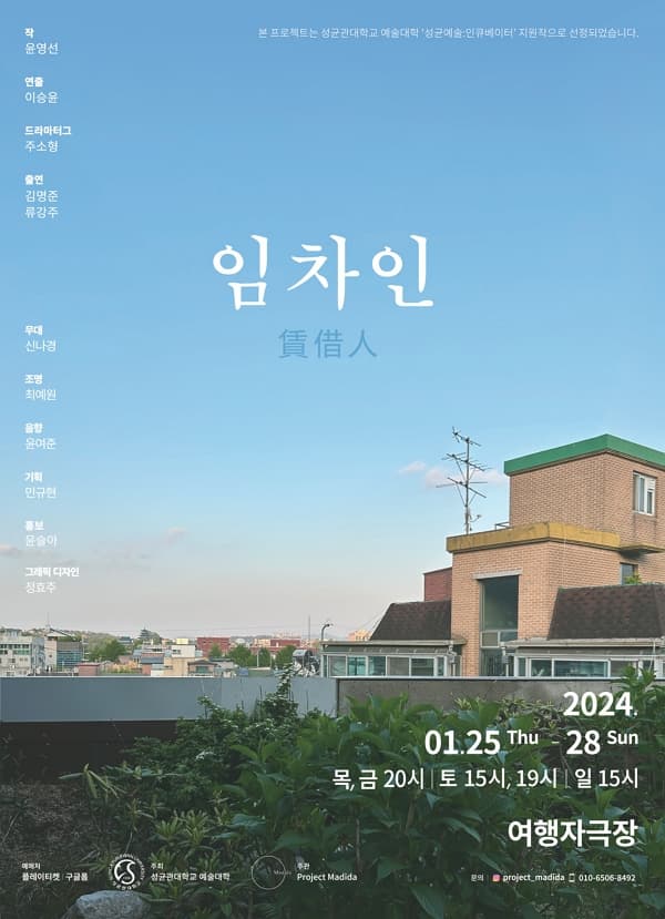 임차인 기간 : 2024-01-25 ~ 2024-01-28 장소 : 여행자극장 문의처 : 010-6506-8492 / 인스타DM (project_madida) 요금 : 무료 연극 서울 예매하기
