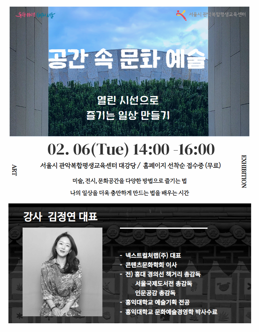 공간 속 문화예술, 열린 시선으로 즐기는 일상 만들기 - 인문학 특강