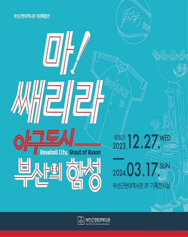 마! 쌔리라! 야구도시 부산의 함성 기간 : 2023-12-27 ~ 2024-03-17 장소 : 부산근현대역사관 문의처 : 부산근현대역사관 051-607-8001 요금 : 무료 전시 부산 예매하기
