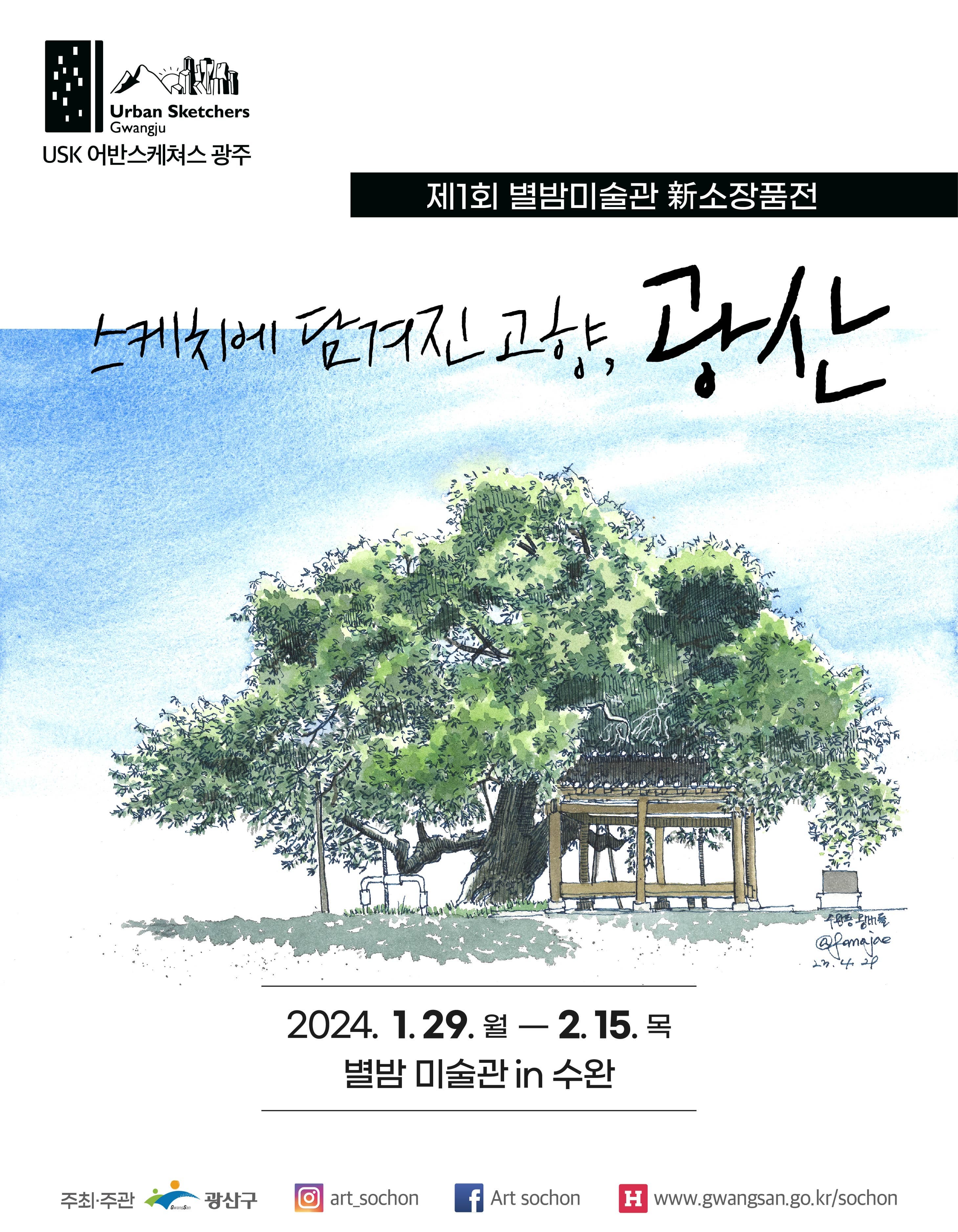 <스케치에 담겨진 고향, 광산> 별밤미술관 in 수완 기간 : 2024-01-29 ~ 2024-02-15 장소 : 별밤미술관 In 수완 문의처 : 062-960-3688 요금 : 무료관람 전시 광주 예매하기