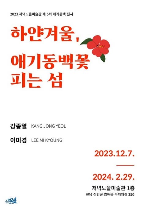 하얀겨울, 애기동백꽃 피는 섬 기간 : 2023-12-07 ~ 2024-02-29 장소 : 저녁노을미술관 문의처 : 저녁노을미술관 061-240-5442 요금 : 무료 ※천사섬 분재정원 입장료 유료 전시 전남 예매하기