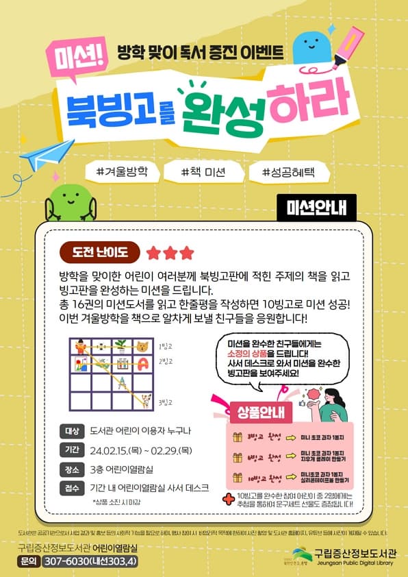 미션! 방학 맞이 독서 증진 이벤트 <북빙고를 완성하라>