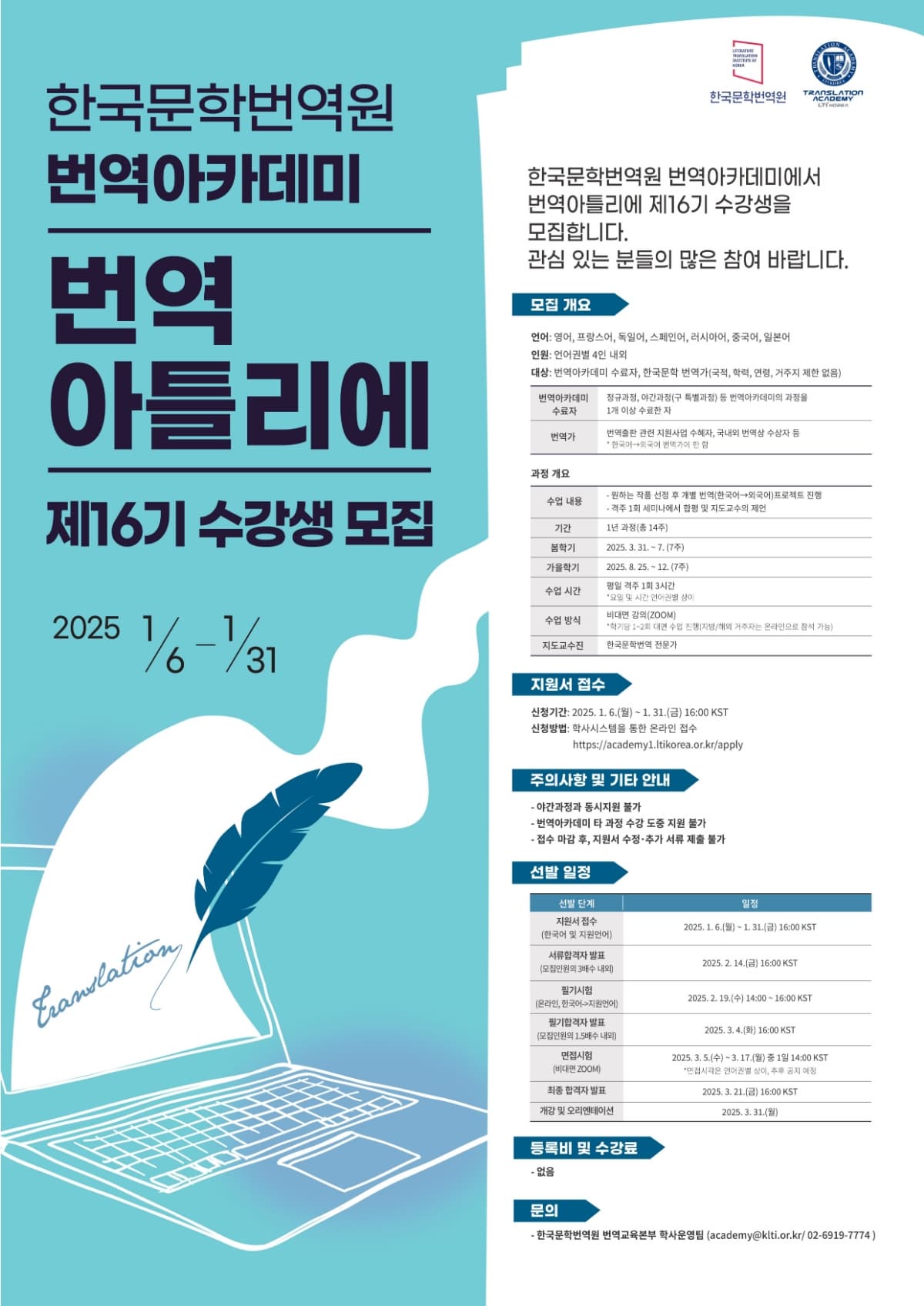 번역아카데미 번역아틀리에 제16기 수강생 모집
